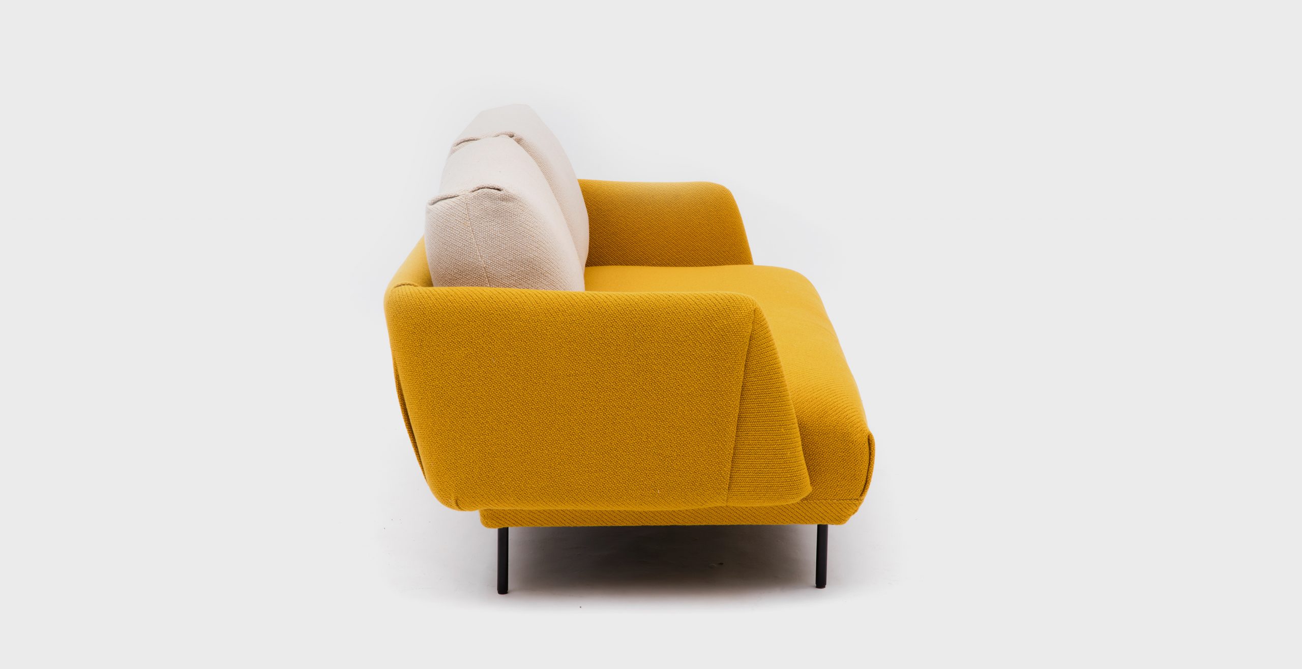 The signature fabric fold detail carries through to the sides, back and cushions across fabric or leather specifications. In addition, the range is available as a series of sofas including corner sofas and an armchair.