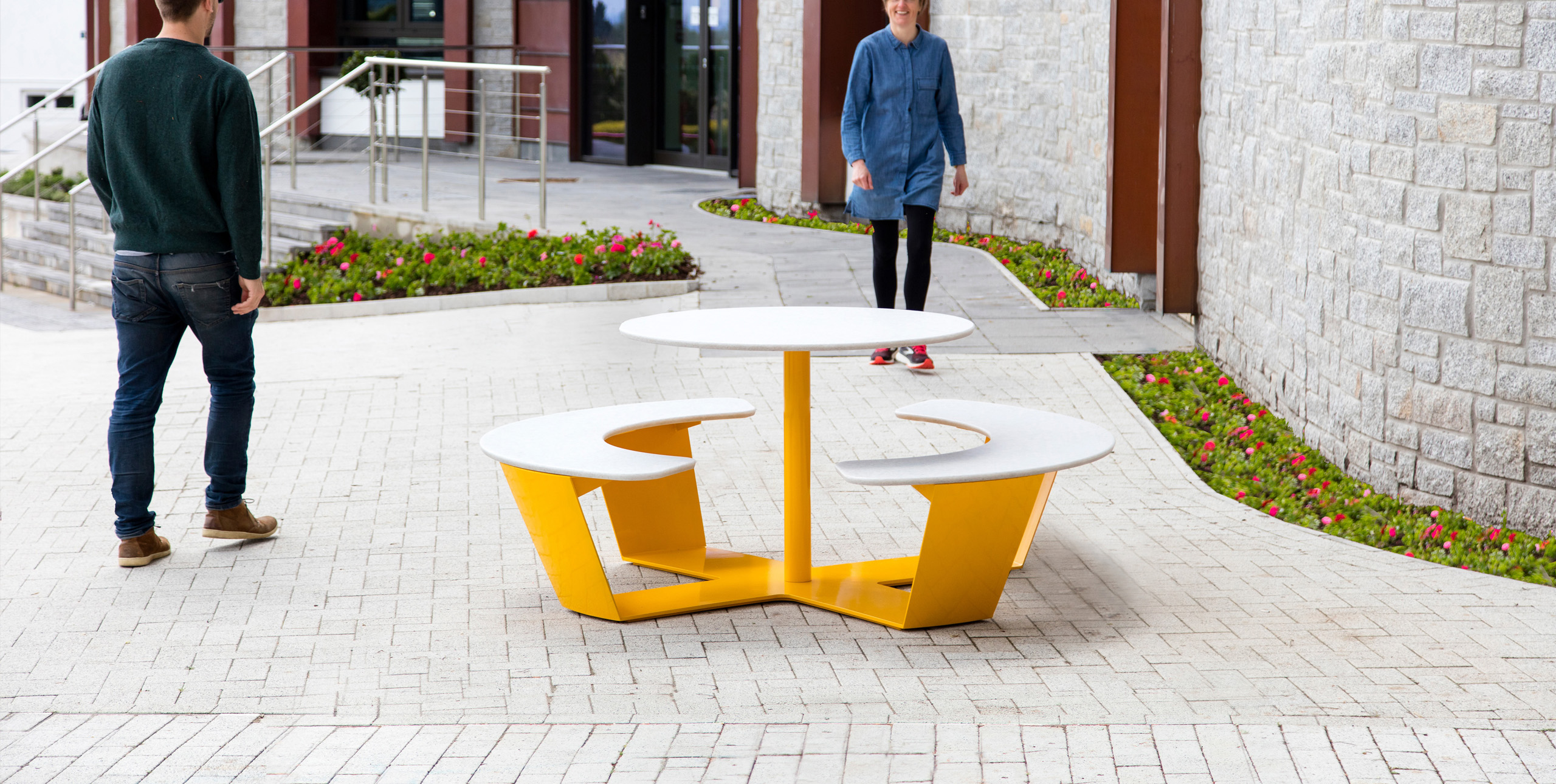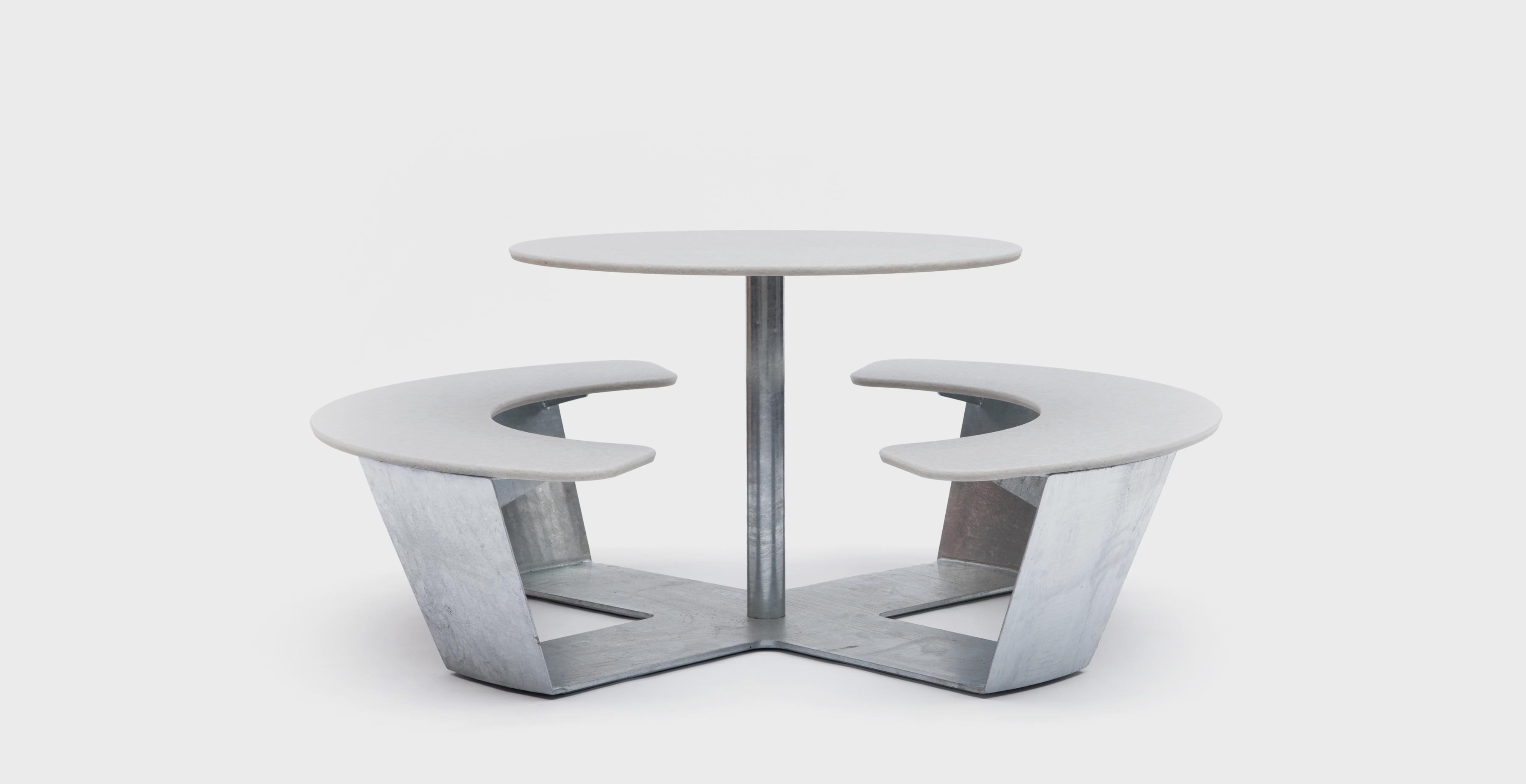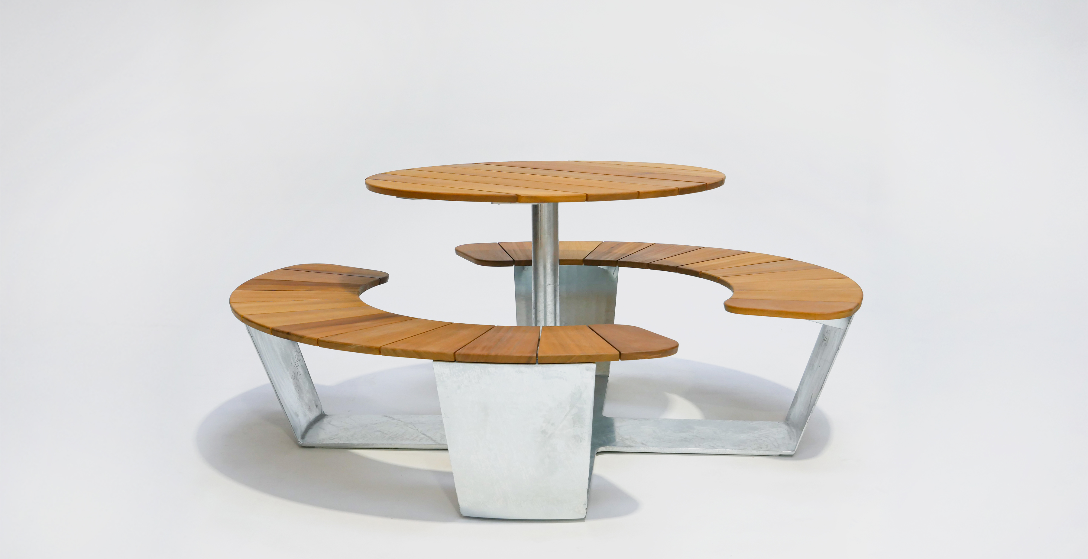 Meta is both circular in shape and circular in production – options of FSC certified Iroko or Smile Plastics Grey Mist go with either a galvanised or powder coated frame and make Meta the champion of our products with the highest recycled content which can be easily recycled here in the UK.