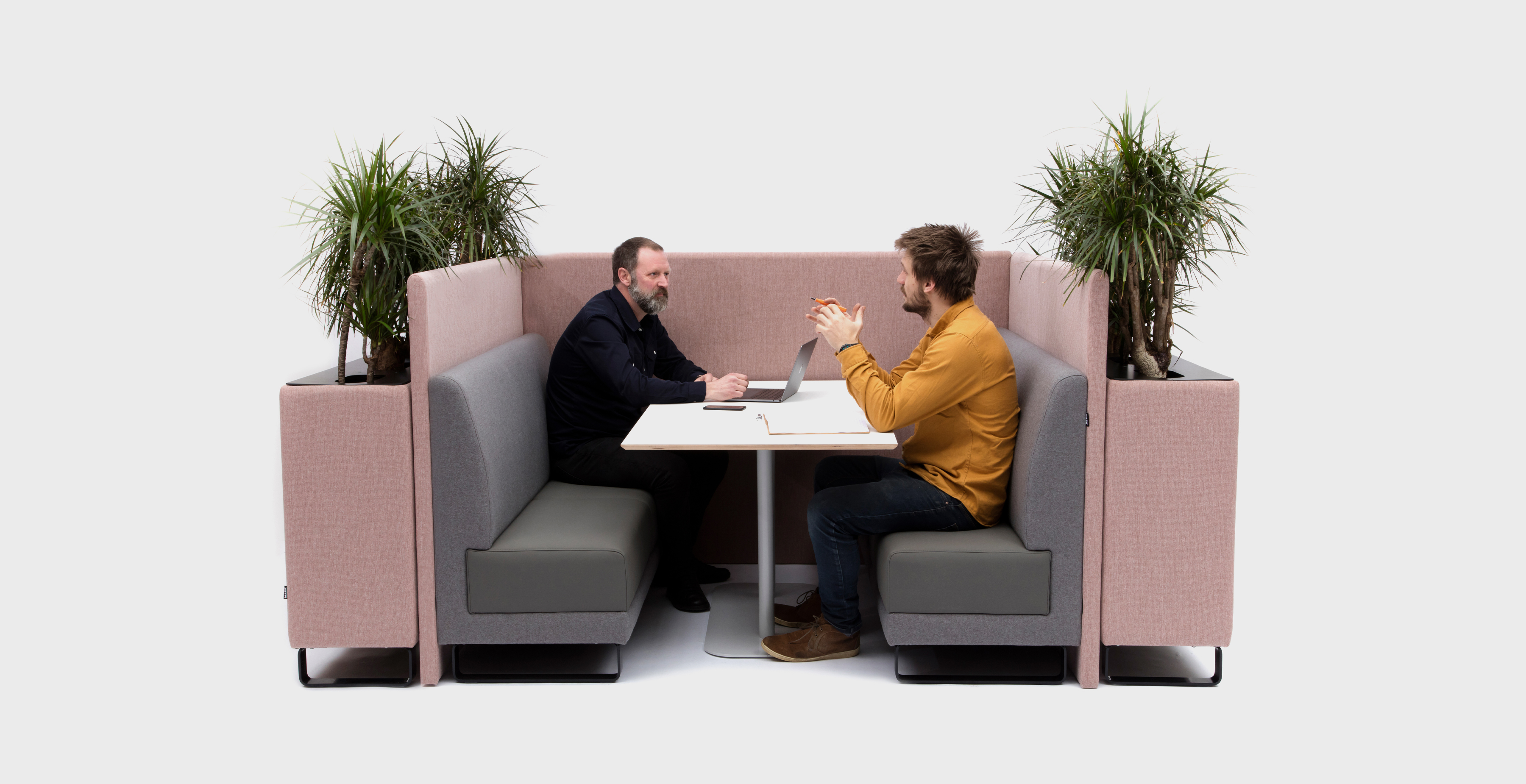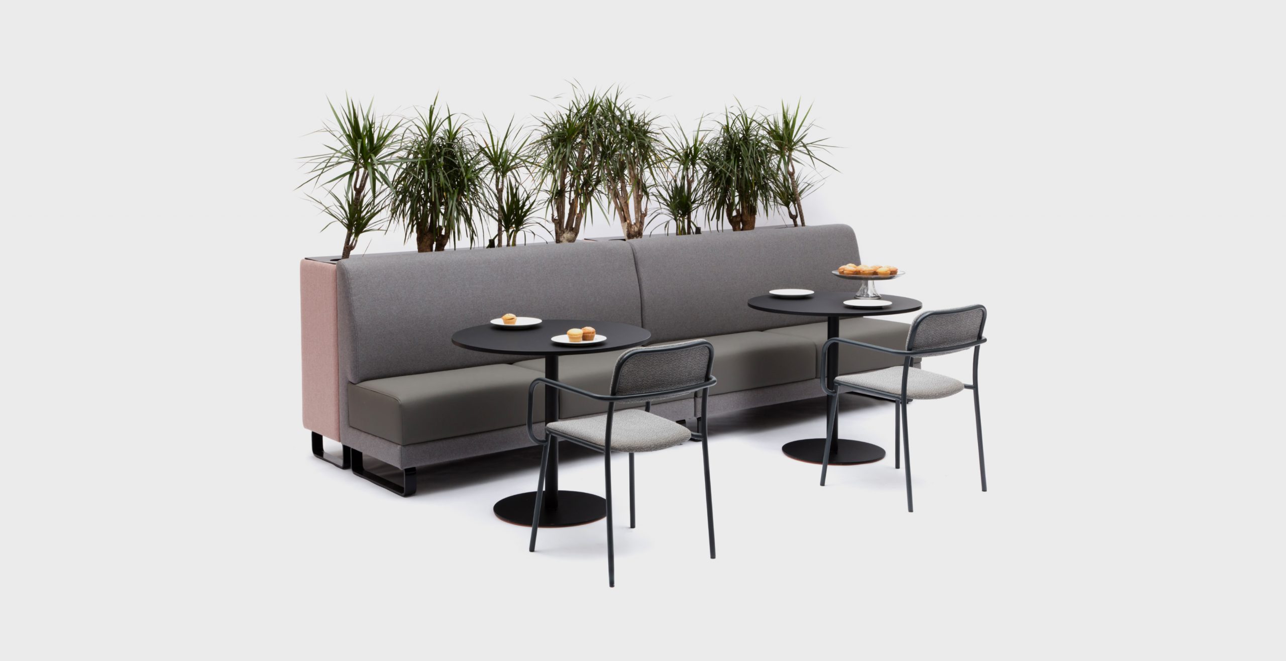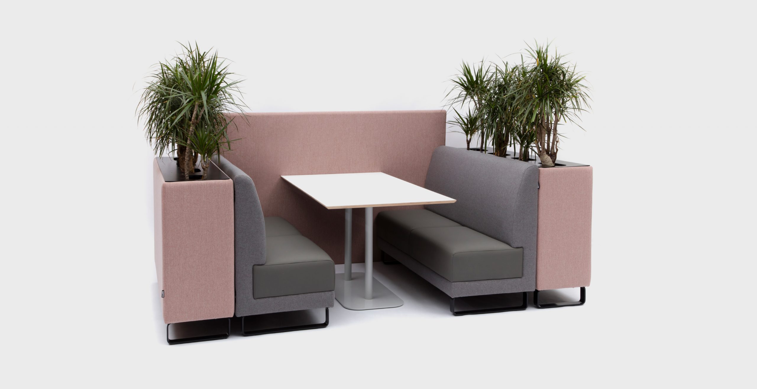 Part of the popular Studioscape range the dining module can be configured as booths, banquette seating or curved and straight benches. With the advantage of being able to add screens, planters, tables and power/data units in tables or seating.
