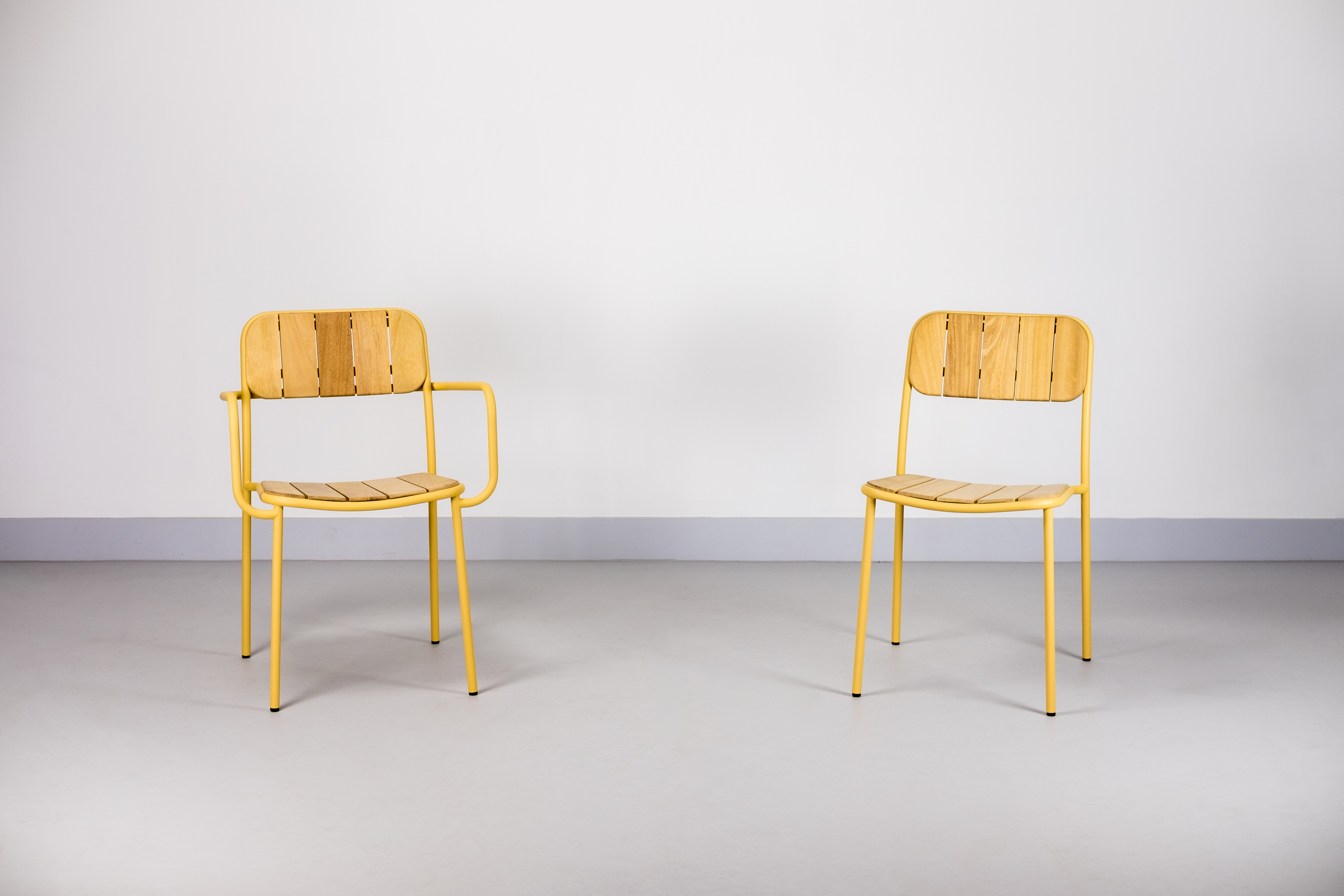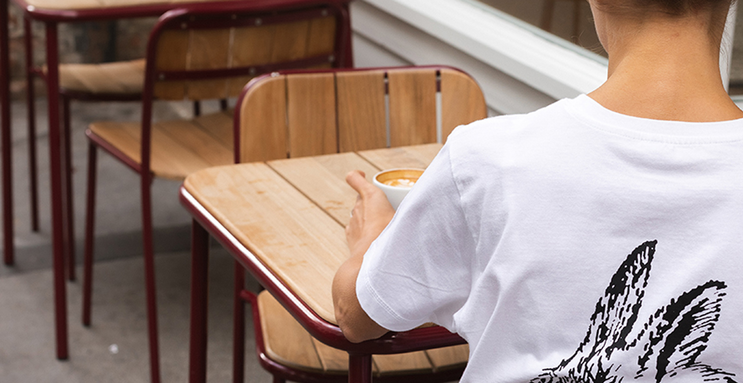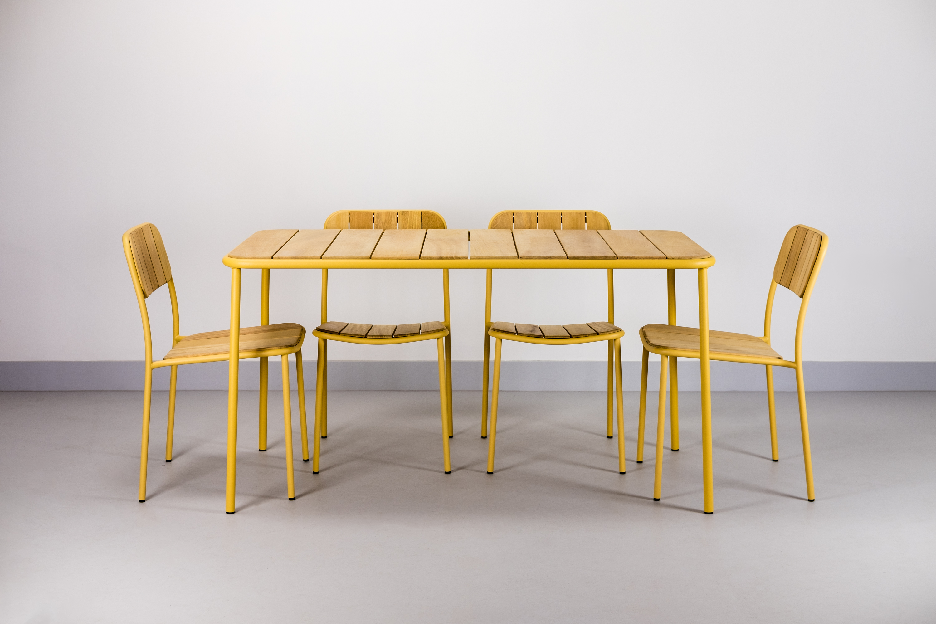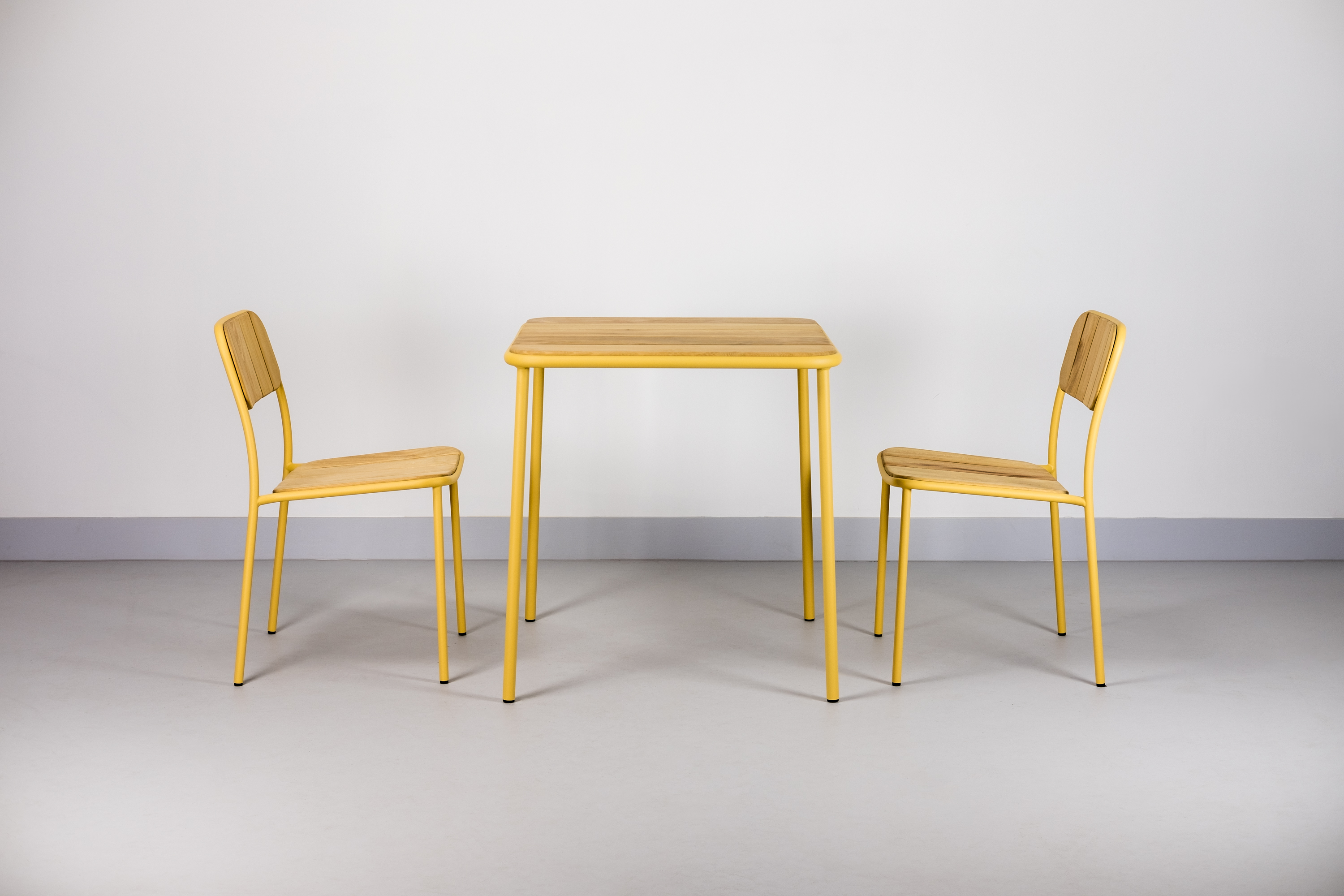 Its compact footprint saves space and reduces clutter, stacking 7 high when not in use and can be partnered with a a coordinating table; perfectly suited to an outdoor café and dining environments.