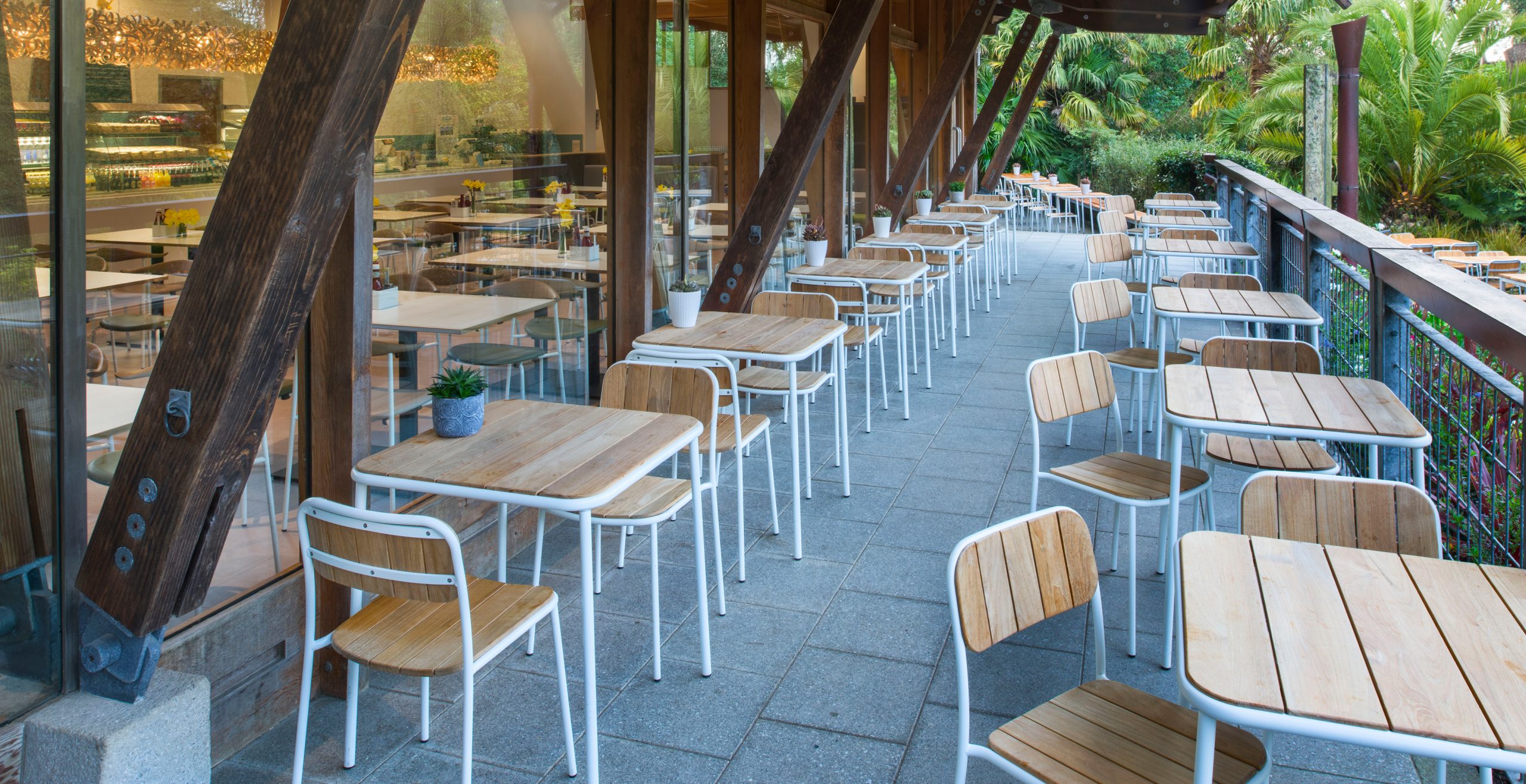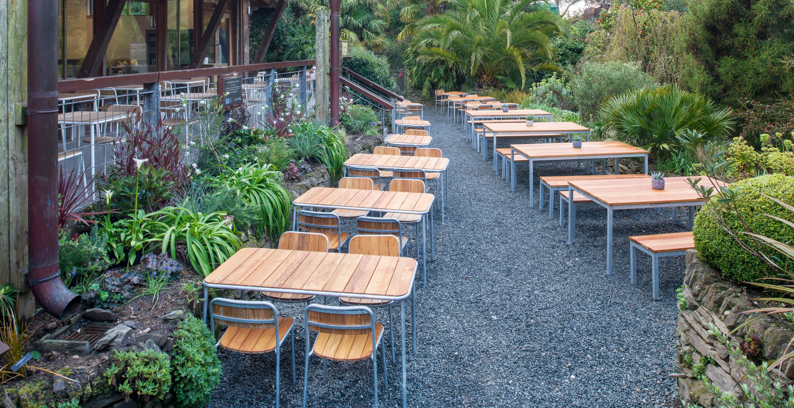 We really enjoyed the opportunity to work locally on this project. Our design studio Hart Miller Design created the interior space for the sub-tropical setting of Trebah Garden kitchen café and MARK was pleased to supply a wide selection of the furniture including outdoor Verso tables and chairs, with accompanying Wave tables and benches.